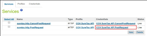 - Update suretax.http.CancelPostRequest service with the correct credentials: